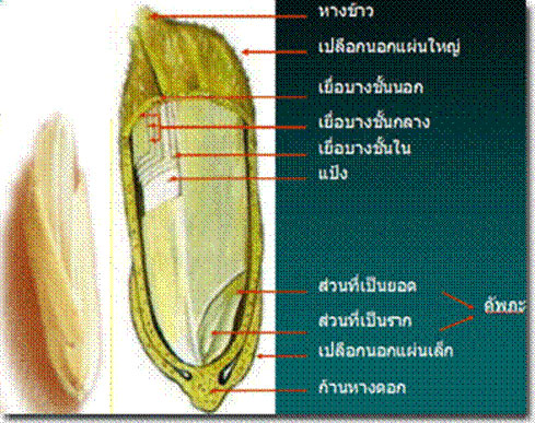 จากการศึกษาทางกายภาพและทางชีวเคมีพบว่า "เมล็ดข้าว" ประกอบด้วย เปลือกหุ้มเมล็ด หรือแกลบ (Hull หรือ Husk) ซึ่งจะหุ้มข้าวกล้อง ในเมล็ดข้าวกล้องประกอบด้วย จมูกข้าวหรือคัพภะ (Germ หรือ Embryo) รำข้าว (เยื่อหุ้มเมล็ด) และเมล็ดข้าวขาวหรือเมล็ดข้าวสาร (Endosperm) สารอาหารในเมล็ดข้าวประกอบด้วย คาร์โบไฮเดรตเป็นส่วนประกอบหลัก โดยมีโปรตีน วิตามินบี วิตามินอี และแร่ธาตุที่แยกไปอยู่ในส่วนต่าง ๆ ของเมล็ดข้าว นอกจากนี้ ยังพบสารอาหารประเภท ไขมันซึ่งพบได้ในรำข้าวเป็นส่วนใหญ่ ข้าวเมื่ออยู่ในสภาวะที่มีการเจริญเติบโตจะมีการเปลี่ยนแปลงทางชีวเคมี การเปลี่ยนแปลง จะเริ่มขึ้น เมื่อน้ำได้แทรกเข้าไปในเมล็ดข้าว โดยจะกระตุ้นให้เอนไซม์ภายในเมล็ดข้าวเกิดการทำงาน เมื่อเมล็ดข้าวเริ่มงอก (malting) สารอาหารที่ถูกเก็บไว้ในเมล็ดข้าวก็จะถูกย่อยสลายไปตามกระบวนการทางชีวเคมี จนเกิดเป็นสารประเภทคาร์โบไฮเดรตที่มีโมเลกุลเล็กลง (oligosaccharide) และน้ำตาลรีดิวซ์ (reducing sugar) นอกจากนี้ โปรตีนภายในเมล็ดข้าวก็จะถูกย่อยให้เกิดเป็นกรด อะมิโนและเปปไทด์ รวมทั้งยังพบการการสะสมสารเคมีสำคัญต่าง ๆ เช่น แกมมาออริซานอล (gamma-orazynol) โทโคฟีรอล (tocopherol) โทโค ไตรอีนอล (tocotrienol) และโดยเฉพาะ สารแกมมาอะมิโนบิวทิริกแอซิด (gamma-aminobutyric acid) หรือที่รู้จักกันว่า "สารกาบา"(GABA)