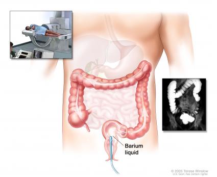 เป็นกระบวนการตรวจทางรังสีวินิจฉัย โดยคนไข้จะได้รับการสวนสารที่มีส่วนประกอบของแบเรียม (Barium) เข้าไปทางทวารหนัก สารเหล่านี้เป็นสารทึบแสง เมื่อถ่ายภาพเอกซเรย์จะเห็นภาพชัดเจน สารเหล่านี้เมื่อสวนเข้าำไปจะเข้าไปเคลือบผน้งด้านในของลำไส้ใหญ่และทวาร หนัก สามารถหาความผิดปกติของลำไส้ใหญ่และทวารหนัก เมื่อถ่ายภาพเอกซเรย์ออกมา