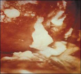 รูปที่ 8 ก้อนฝีอักเสบรุนแรงที่ปีกมดลูกมีลักษณะเป็นกลุ่มคล้ายพวงองุ่น ดูแล “กันและกัน” ให้ดีจะไม่มีภัยเงียบจากตกขาว