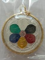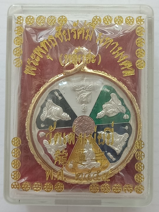 เหรียญพุทธชัยรัศมี มหามงคล (หลักฮะ) คุ้มครองทั่วทิศ เสริมวาสนาบารมีทุกปีทุกราศี พร6ประการ วัดมังกรกมลาวาส เล่งเน่ยยี่ 2554 ลงยา 6 สี 6 รัศมี