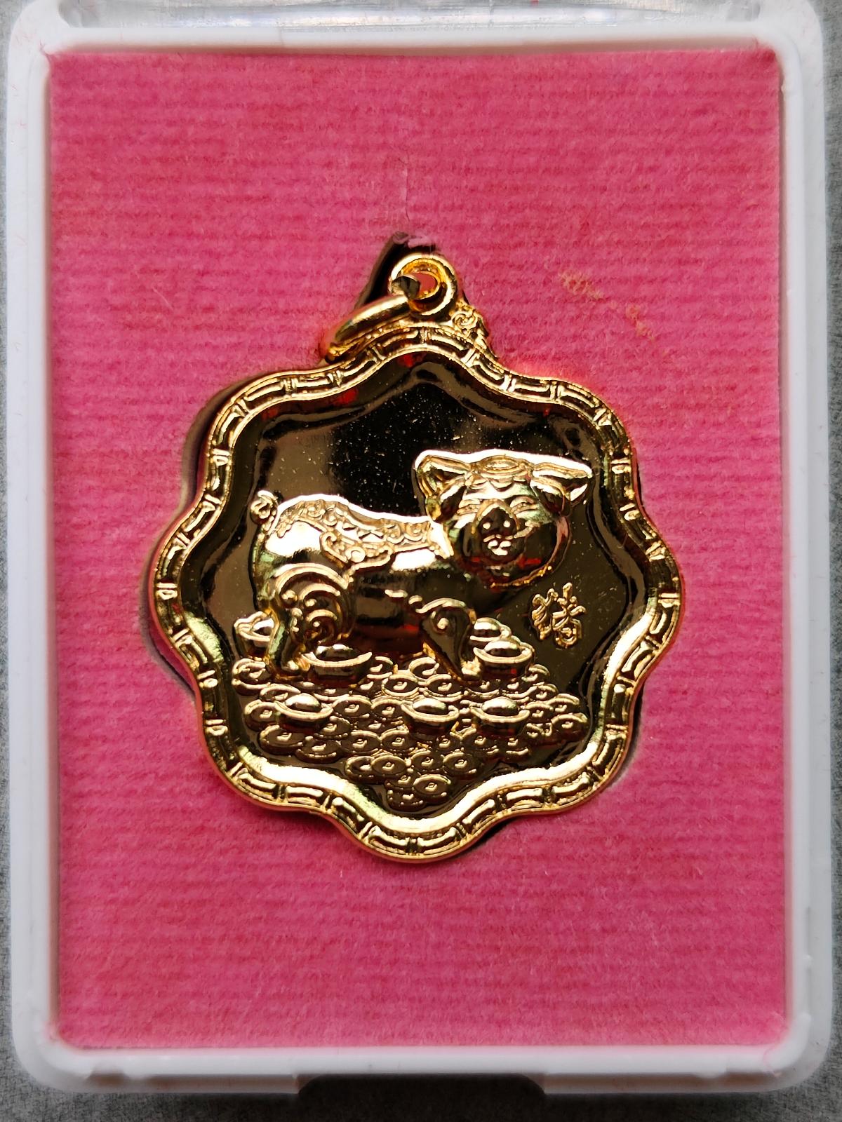 เหรียญกะไหล่ทอง หมูนำโชค วัดมังกรกมลาวาส เยาวราช ปี 2562 เหรียญหมูทองนำเงินมาให้