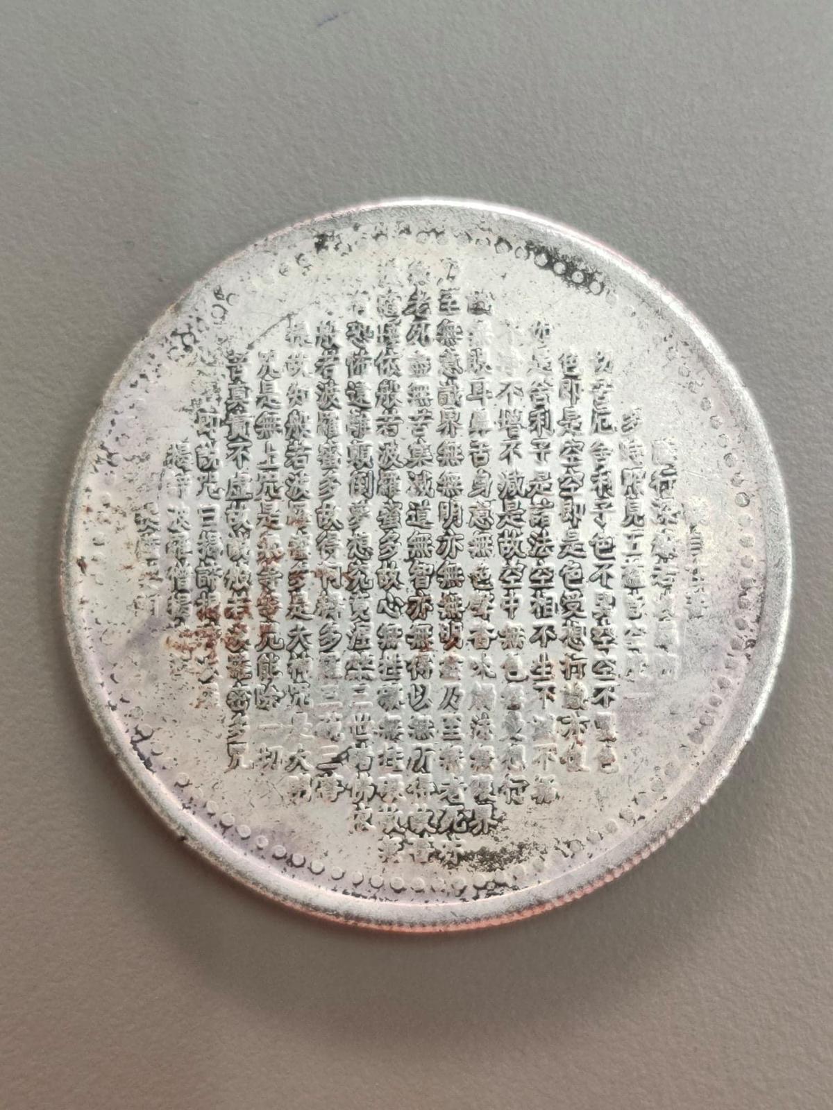ด้านหลังเป็นคาถามหากรุณาธารณีสูตร 大悲咒 ภาษาจีน งานจากประเทศจีน