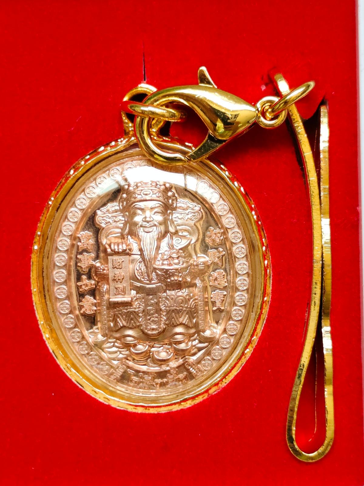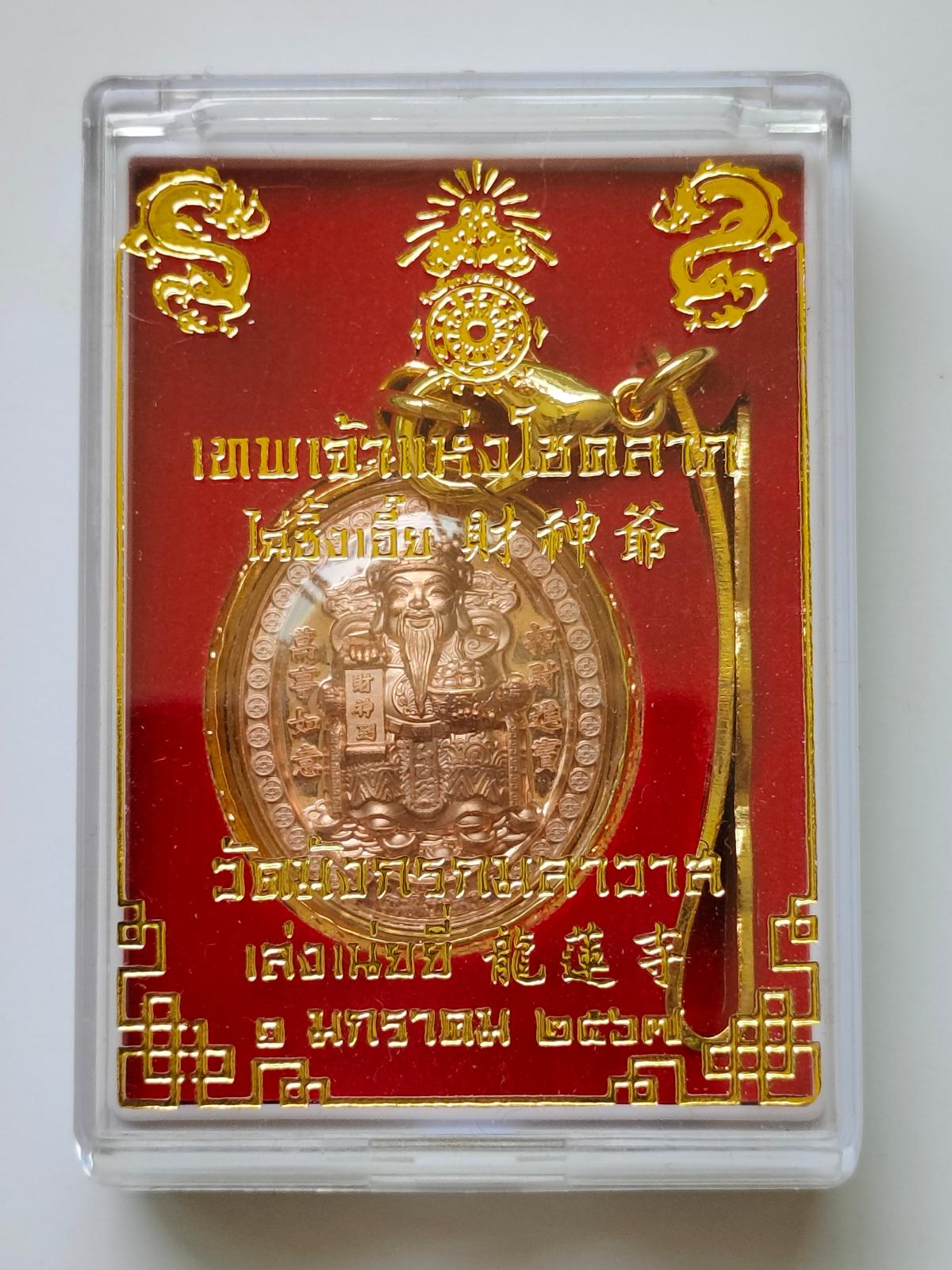 เหรียญ เทพเจ้าแห่งโชคลาภ ไฉ่ซิ้งเอี๊ย เนื้อทองแดงกะหลั่ยนาค วัดมังกรกมลาวาส เล่งเน่ยยี่ 1 มกราคม 2567 อุดมโภคทรัพย์ มั่งมีศรีสุข เลี่ยมเดิมวัด พร้อมแนบมังกรหนุนดวง