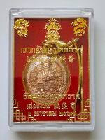 ด้านหลังเป็นยันต์ประจำองค์เทพเจ้า และคาถาเรียกโชคลาภทุกทิศ