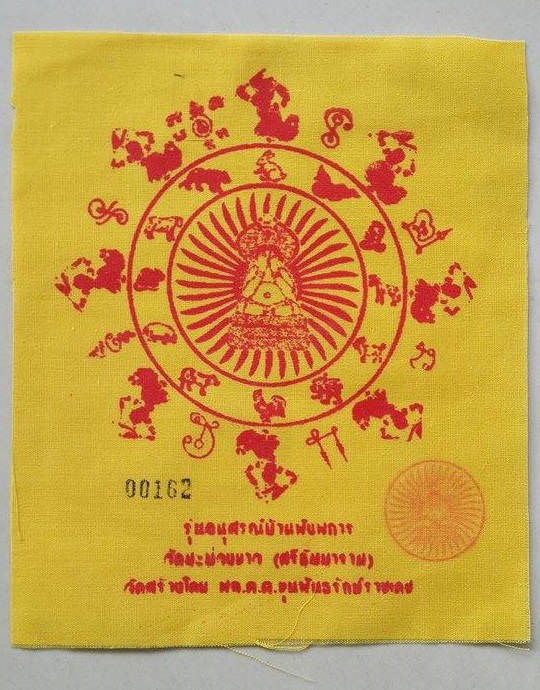 ผ้ายันต์ ปิดตาพังพะการ วัดมะม่วงขาว จัดสร้างโดยขุนพันธ์ ปี 2548 สีเหลือง เบอร์ 162 หายากมาก บูชาผ