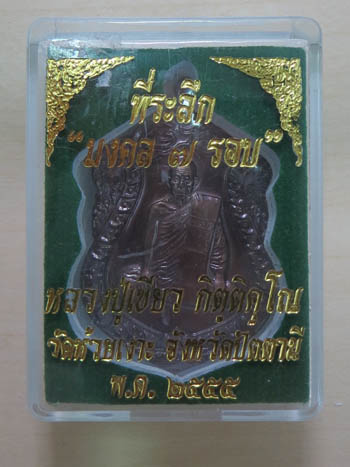 เหรียญที่ระลึก มงคล7รอบ หลวงปู่เขียว กิตฺติคุโณ วัดห้วยเงาะ จ.ปัตตานี เนื้อทองแดงมันปู หลังยันต์รับท