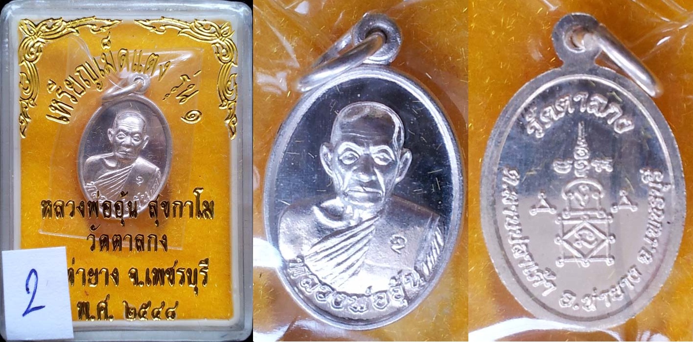 เหรียญเม็ดแตง รุ่นแรก หลวงพ่ออุ้น วัดตาลกง จัดสร้างปี 2548 เนื้อเงิน สวยมาก กล่องเดิม(2)