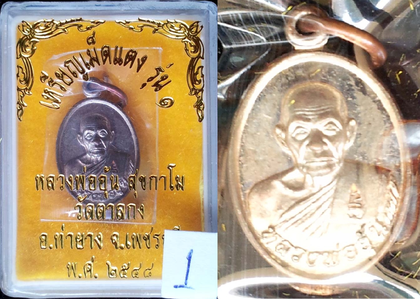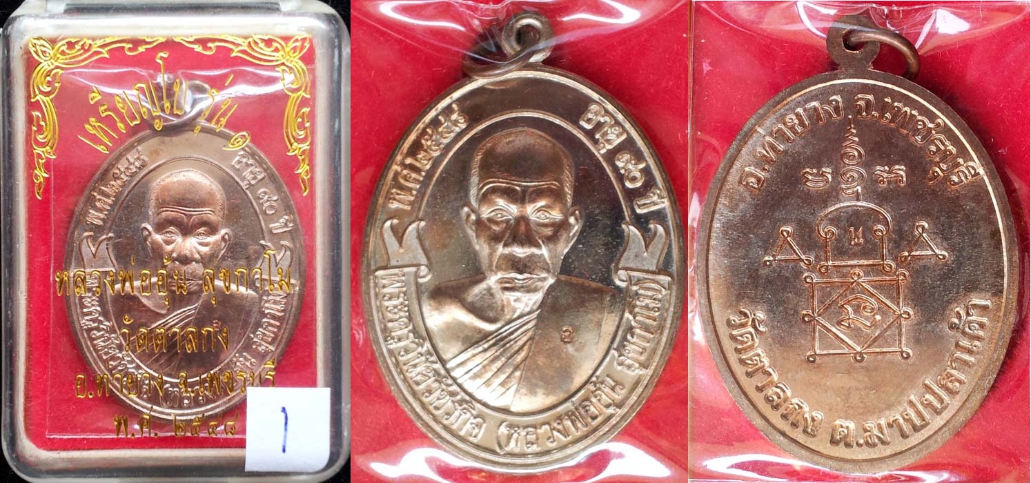 เหรียญเม็ดแตง รุ่นแรก หลวงพ่ออุ้น วัดตาลกง จัดสร้างปี 2548 เนื้อนวโลหะ สวยมาก กล่องเดิม(1)