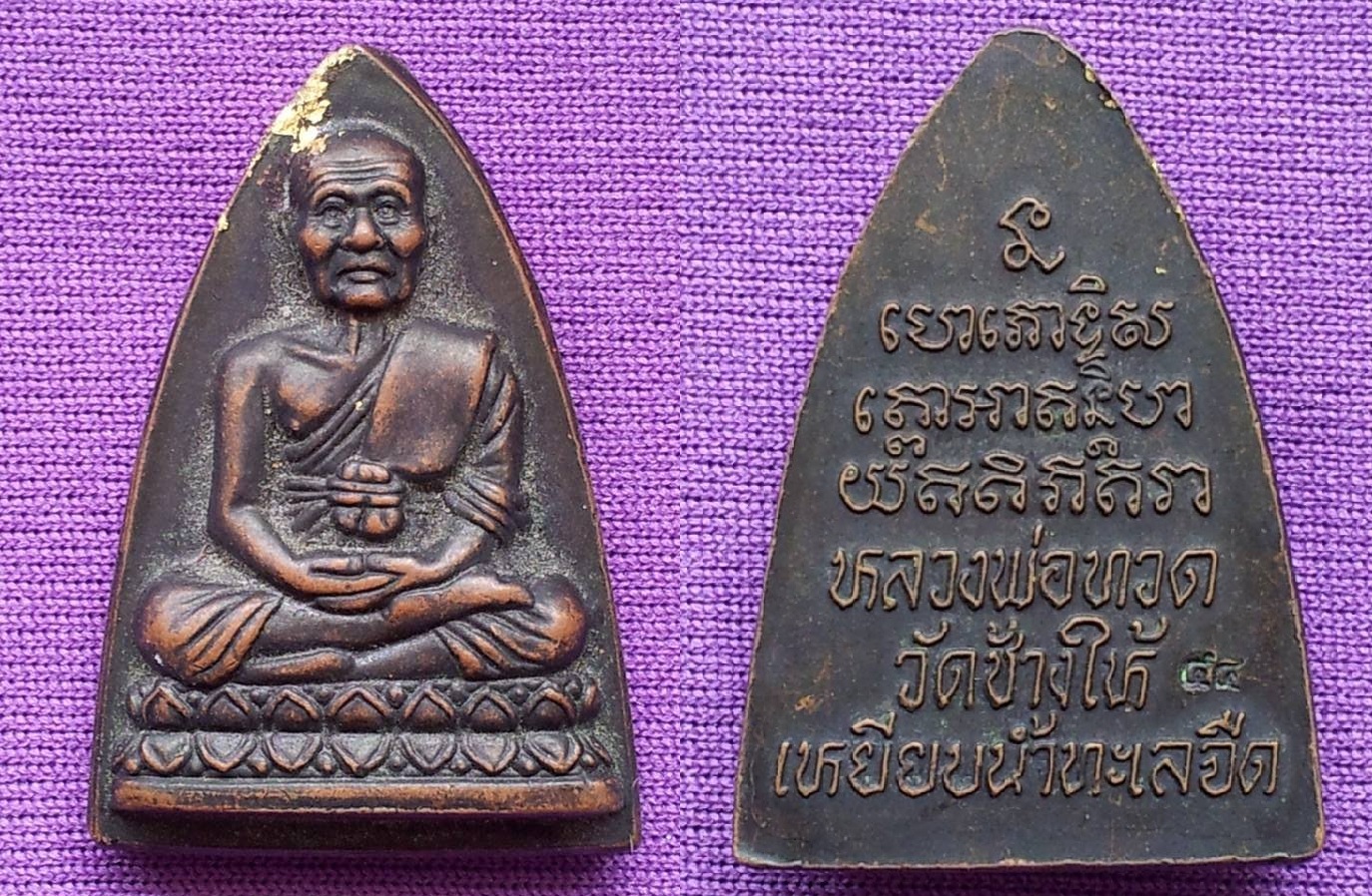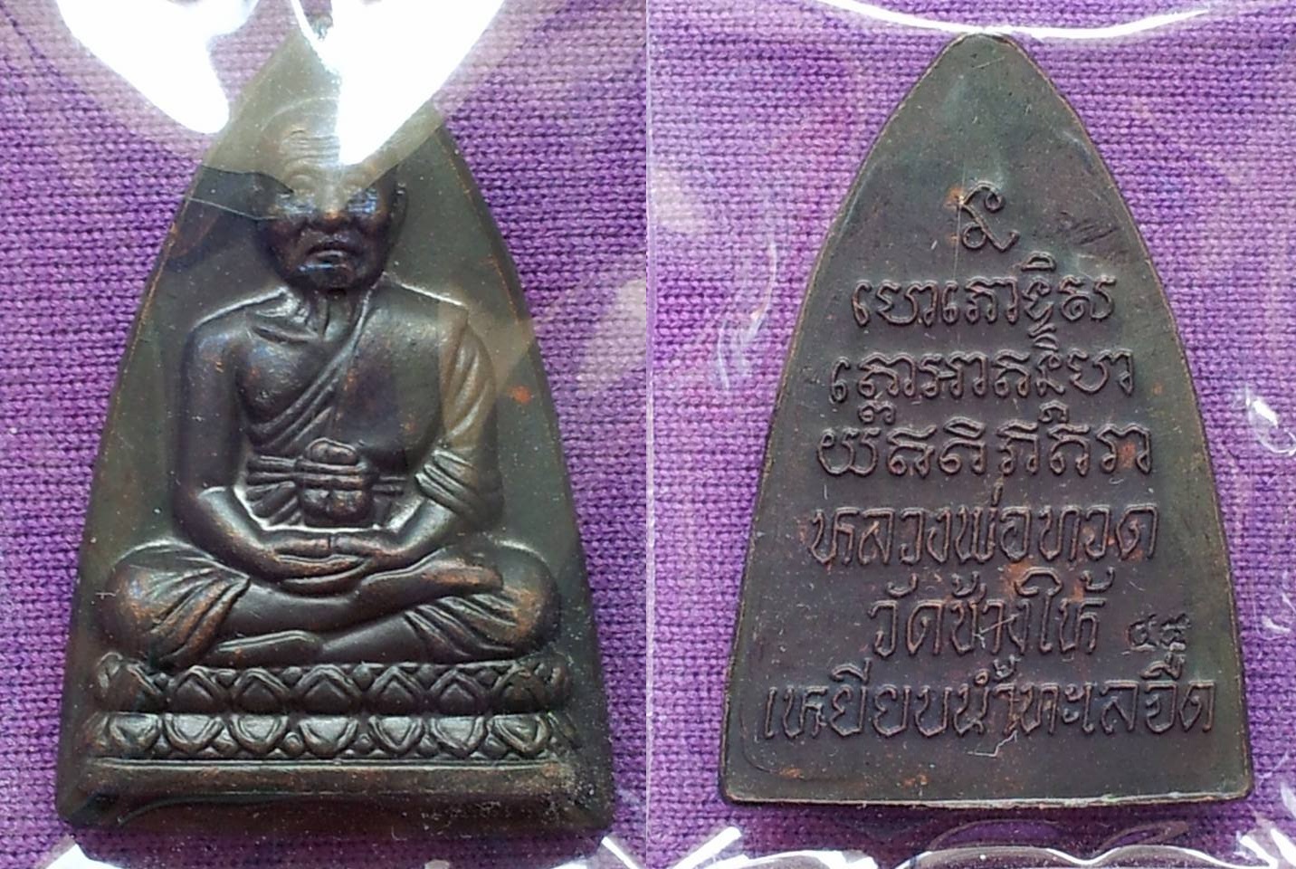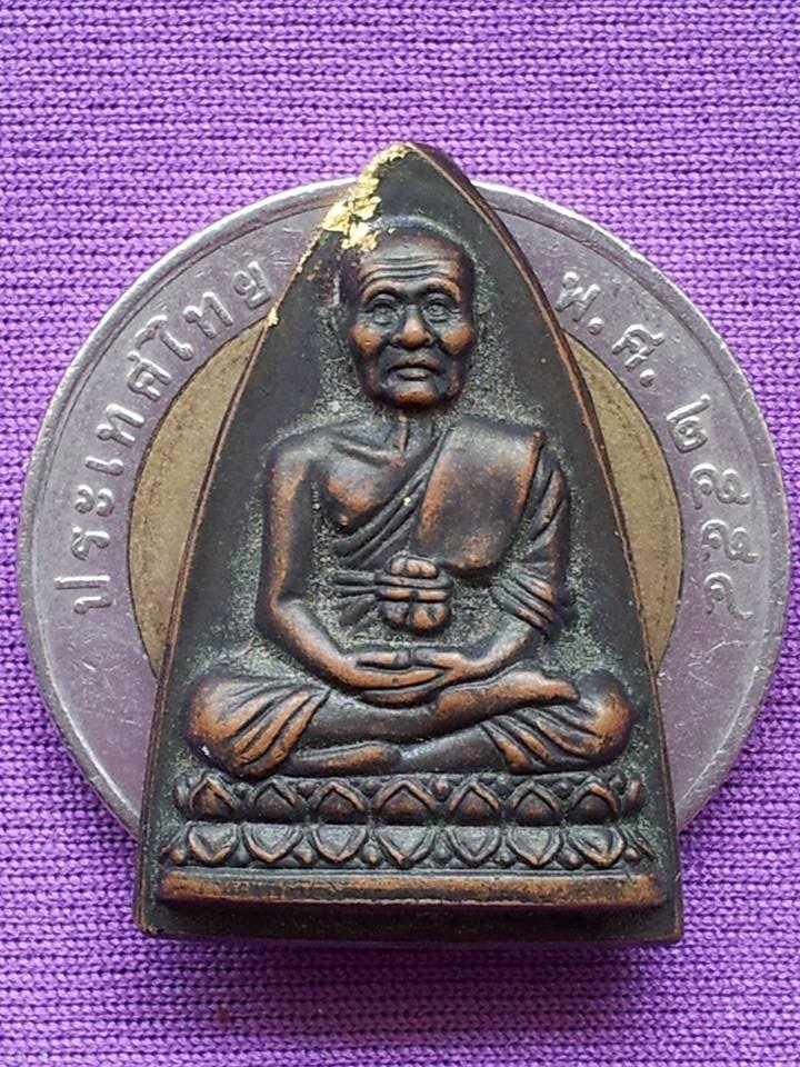 หลวงปู่ทวด พิมพ์กลีบบัวเล็ก หลังหนังสือ ปี2545 เนื้อทองแดงรมน้ำตาล สภาพสวยมาก (ผิวรุ้ง) ดูง่าย (2)