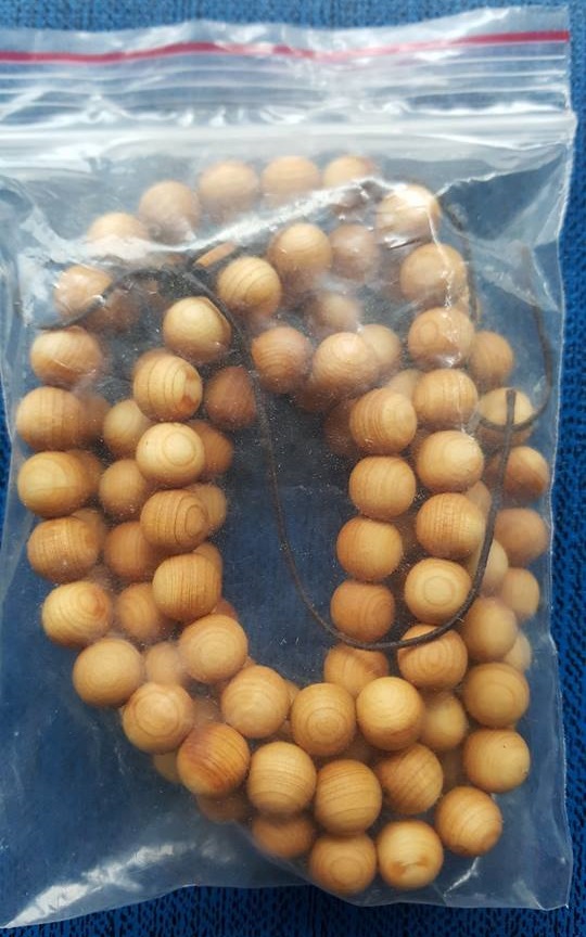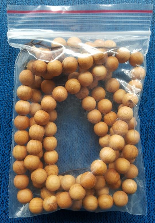 สร้อยประคำ 108 เม็ด ไม้แก่นจันทร์ หรือ ไม้จันทร์หอม ขนาดเส้นผ่านศูนย์กลาง 0.8 ซม. ความยาววัดเส้นคู่ 16.5 นิ้ว รับประกันไม้จันทร์หอม แท้ ๆ จากประเทศจีน