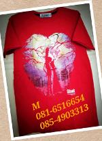 (2.6)Shoot เสื้อยืด ชาย-หญิง สีแดงเข้ม ลายหัวใจเงา Size M เนื้อผ้าเบาสบาย ถูกกว่าที่หน้าร้าน