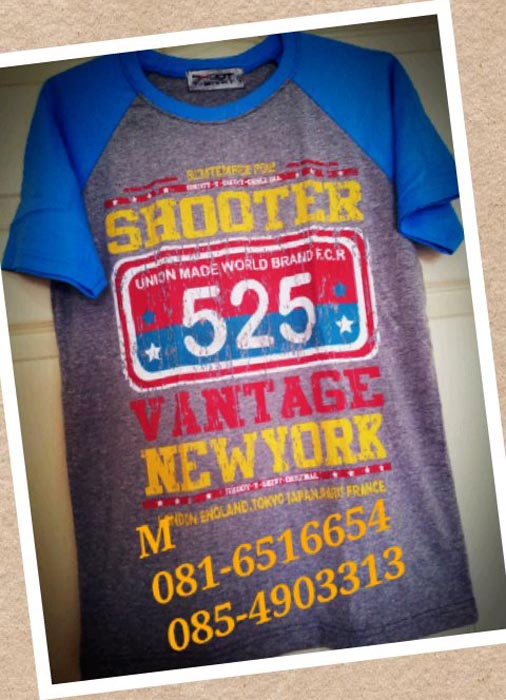 (2.12)Shoot เสื้อยืด ชาย-หญิง สีเทาลายแขนน้ำเงิน ลาย525VANTAGE Size M เนื้อผ้าเบาสบาย ถูกกว่าที่หน้าร้าน