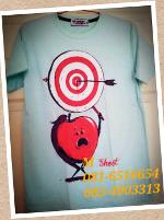 (2.11)Shoot เสื้อยืด ชาย-หญิง สีน้ำเงินใส ลายหัวใจเงา Size M เนื้อผ้าเบาสบาย ถูกกว่าที่หน้าร้าน