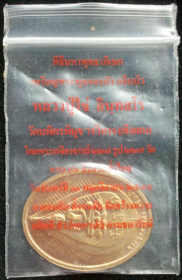 เหรียญพระอรหังกลีบบัว หลวงปู่ไข่ วัดบพิตรพิมุข ปี45 ทองแดง กองกษาปณ์
