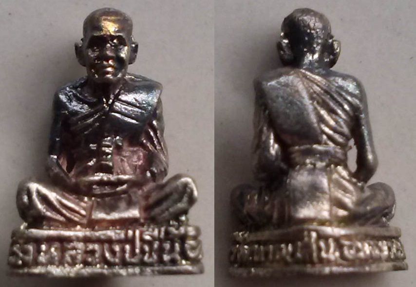 รูปหล่อจิ๋ว ปี2539 หลวงปู่ชื้น วัดญาณเสน อยุธยา เนื้อเงินแท้ มีจาร กล่องเดิม